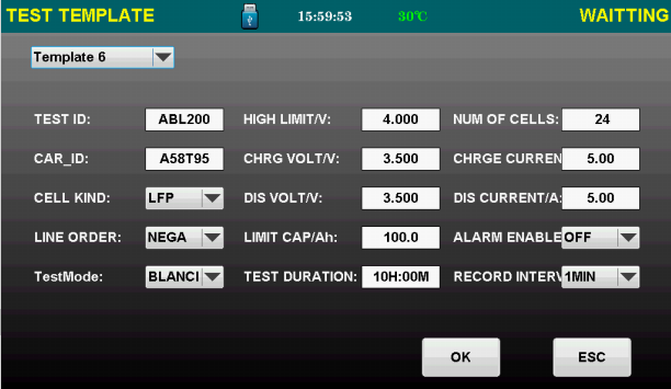 Battery testing template presetting: